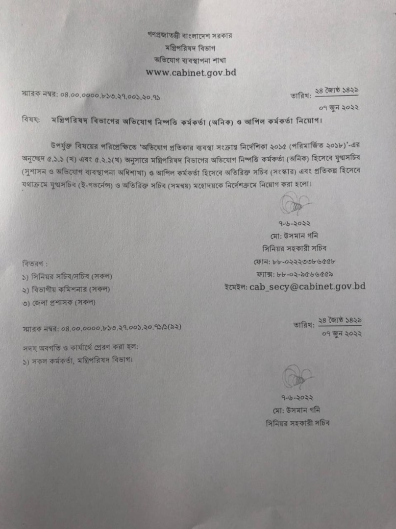 মন্ত্রিপরিষদ বিভাগের অনিক ও আপিল কর্মকর্তাগণ (অফিস আদেশ)